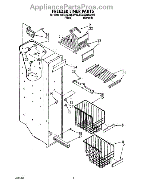 Parts for Whirlpool ED25DQXAN00: 05 - Freezer Liner Parts