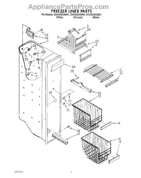 Parts for Whirlpool ED25DQXAW01: 04 - Freezer Liner Parts
