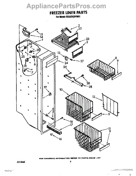 Parts for Whirlpool ED25DQXVN01: 05 - Freezer Liner Parts