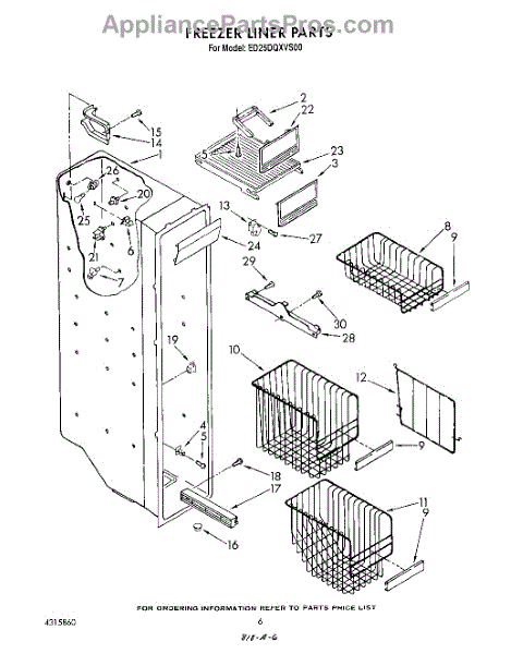 Parts for Whirlpool ED25DQXVS00: 05 - Freezer Liner Parts