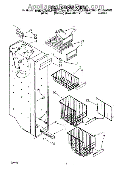 Parts for Whirlpool ED25DWXTG02: 05 - Freezer Liner Parts
