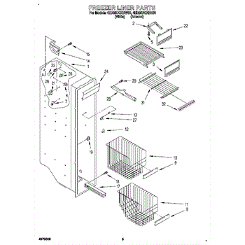 Parts for Whirlpool ED25PBXBW00: 04 - Freezer Liner Parts
