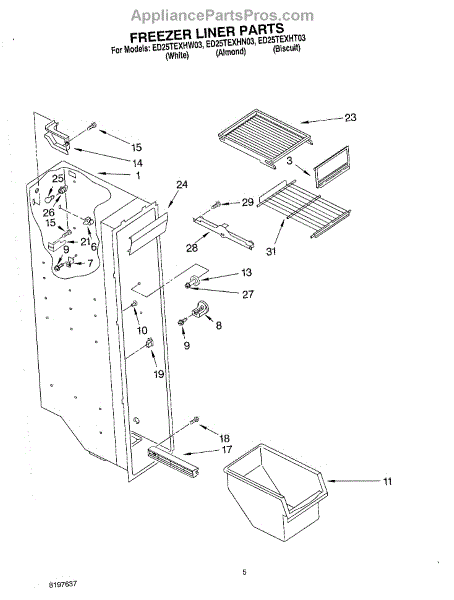 Parts for Whirlpool ED25TEXHW03: 04 - Freezer Liner Parts