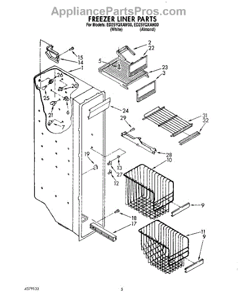 Parts for Whirlpool ED25YQXAW00: 04 - Freezer Liner Parts