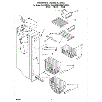 Parts for Whirlpool ED27DQXDB00: 04 - Freezer Liner Parts