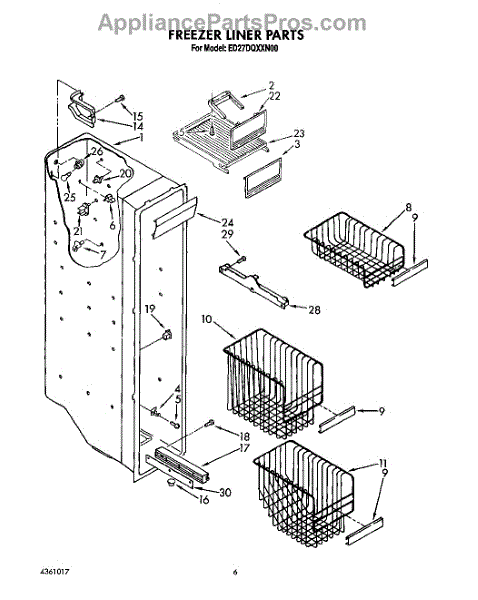 Parts for Whirlpool ED27DQXXN00: 05 - Freezer Liner Parts