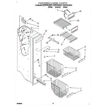 This ice compartment door closes off the ice storage area inside the freezer, helping contain cold air and keep ice clean. Replace a cracked or warped door to restore a proper seal and easy access to the bin.