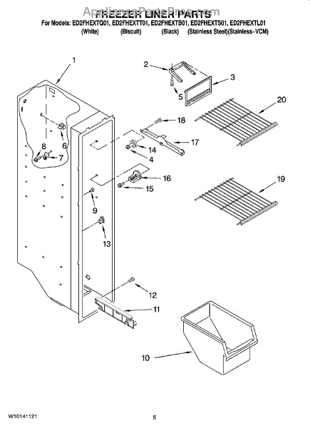 Parts for Whirlpool ED2FHEXTT01: 04 - Freezer Liner Parts
