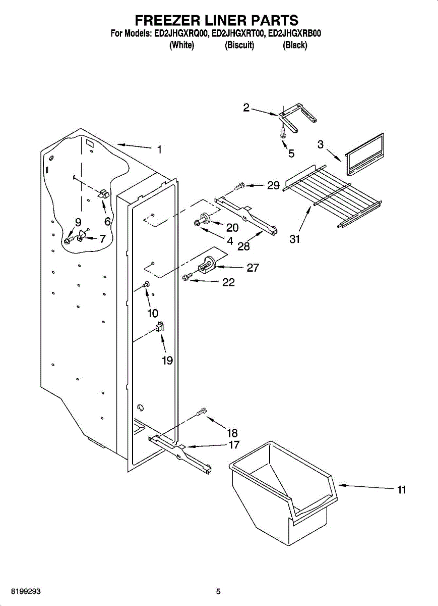 Parts for Whirlpool ED2JHGXRQ00: 04 - Freezer Liner Parts