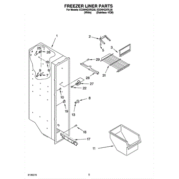 Parts for Whirlpool ED2NHGXRQ00: 04 - Freezer Liner Parts