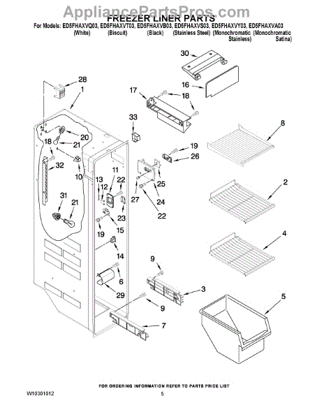 Parts for Whirlpool ED5FHAXVQ03: 04 - Freezer Liner Parts
