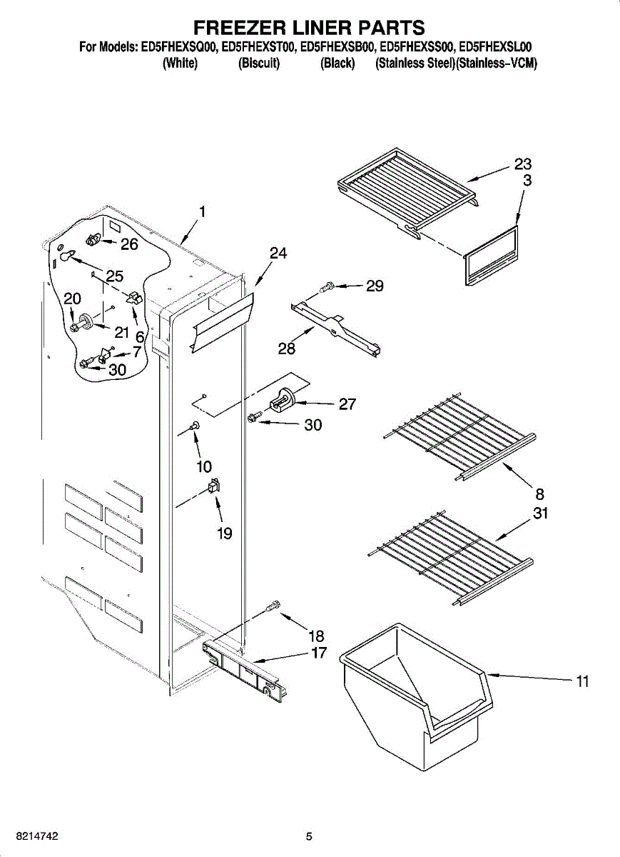 Parts for Whirlpool ED5FHEXSL00: 04 - Freezer Liner Parts