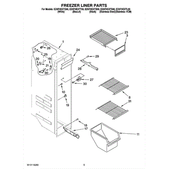 Parts for Whirlpool ED5FHEXTB00: 04 - Freezer Liner Parts