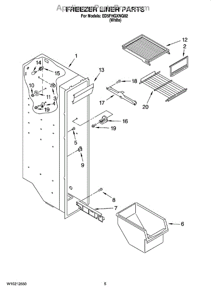 Parts for Whirlpool ED5FHGXNQ02: 04 - Freezer Liner Parts