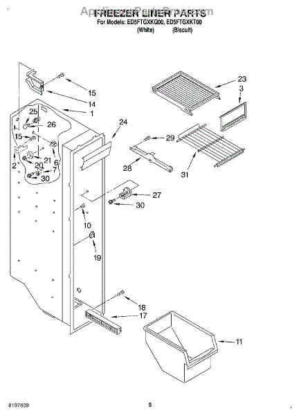 Parts for Whirlpool ED5FTGXKT00: 04 - Freezer Liner Parts