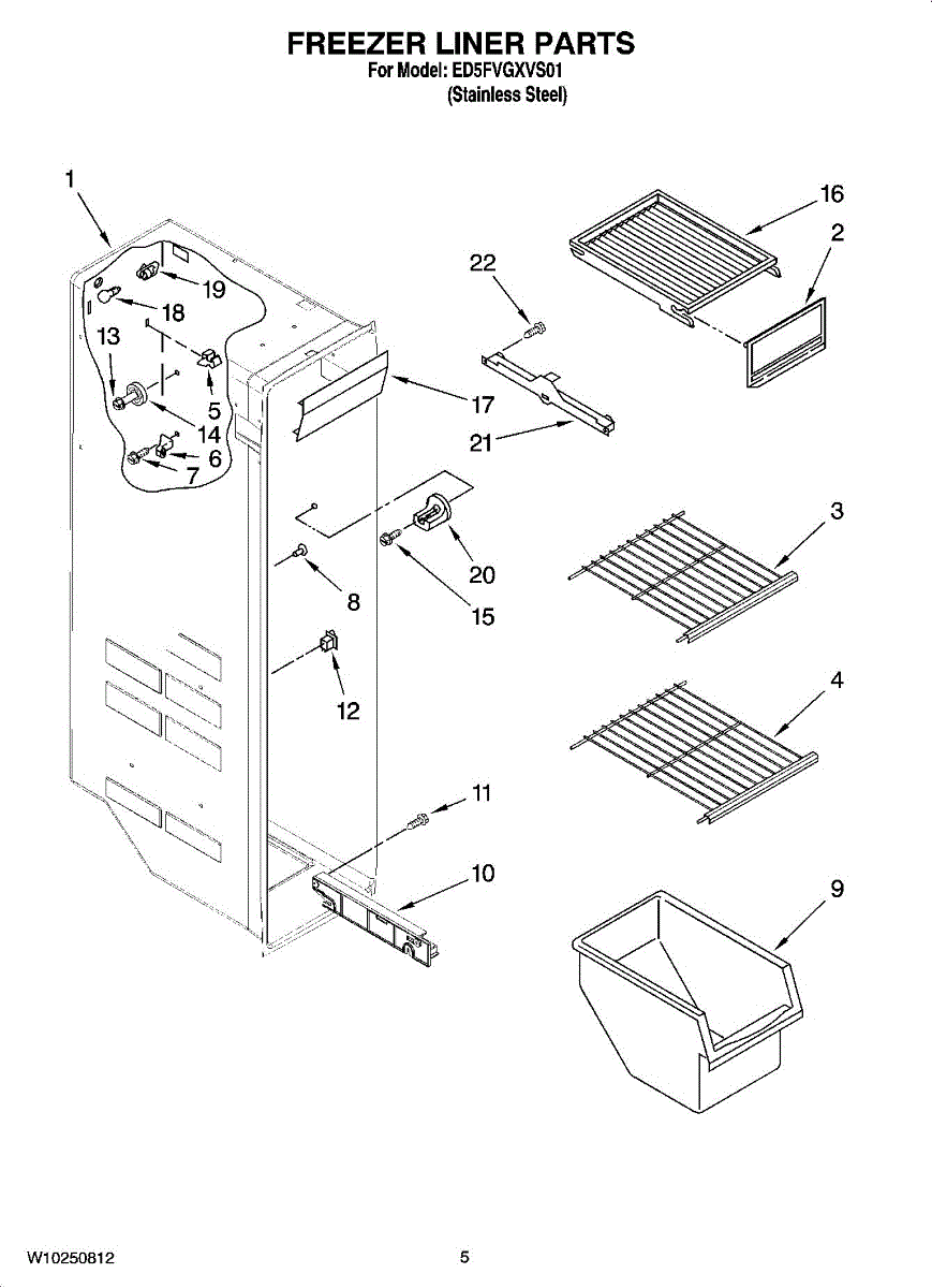 Wire shelf for refrigerator freezer compartment. Holds frozen food items securely. Replace if cracked, bent, sagging, or missing to restore storage space.