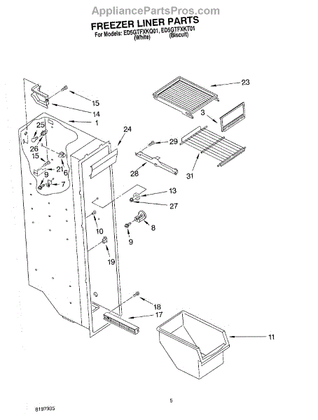 Parts for Whirlpool ED5GTFXKQ01: 04 - Freezer Liner Parts