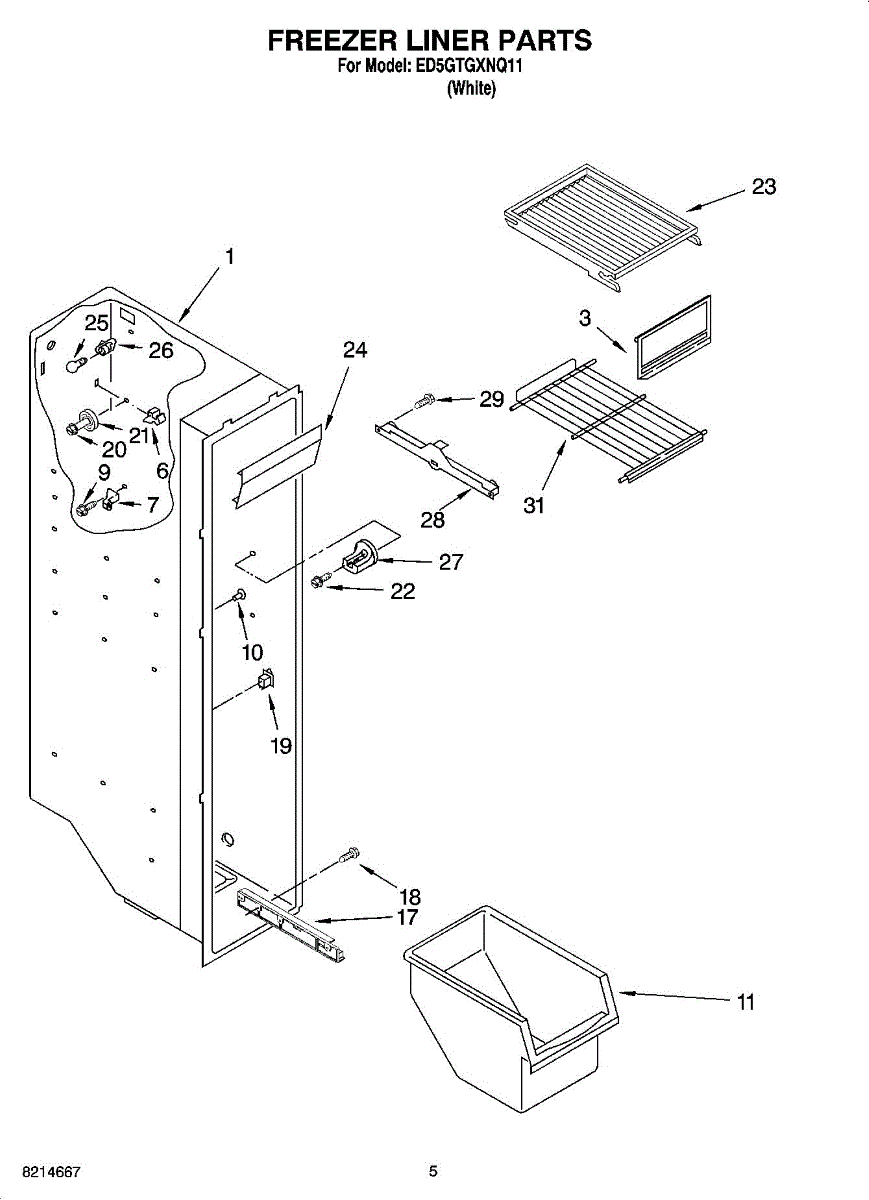 Parts for Whirlpool ED5GTGXNQ11: 04 - Freezer Liner Parts