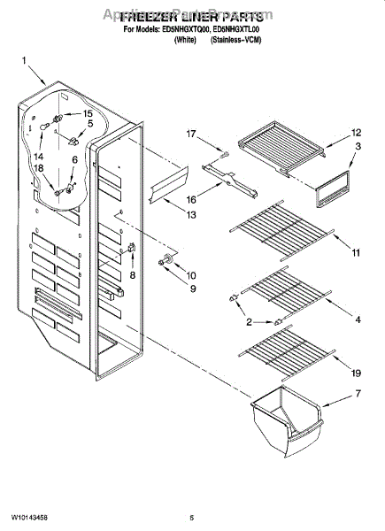 Parts for Whirlpool ED5NHGXTL00: 04 - Freezer Liner Parts