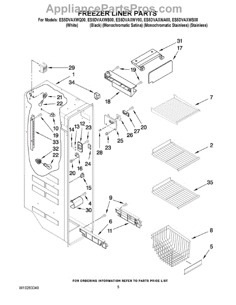 Parts for Whirlpool ES5DVAXWQ00: 04 - Freezer Liner Parts