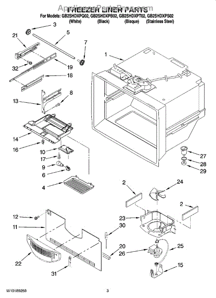 Parts for Whirlpool GB2SHDXPB02: 02 - Freezer Liner Parts