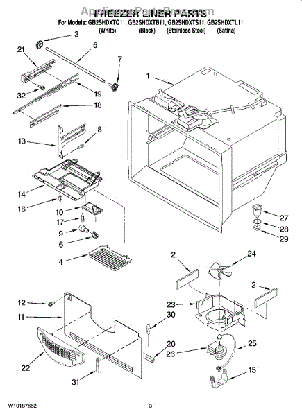 Parts for Whirlpool GB2SHDXTL11: 02 - Freezer Liner Parts