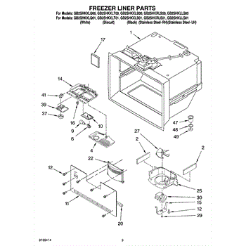 Parts for Whirlpool GB2SHKXLT01: 02 - Freezer Liner Parts
