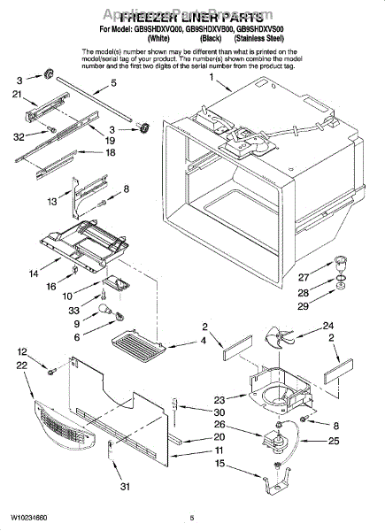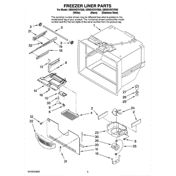 Parts for Whirlpool GB9SHDXVS00: 03 - Freezer Liner Parts