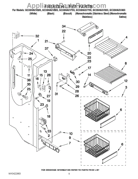 Parts for Whirlpool GC3SHAXVA03: 04 - Freezer Liner Parts