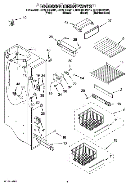 Parts for Whirlpool GC3SHEXNB15: 04 - Freezer Liner Parts
