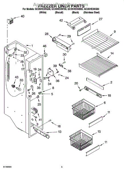 Parts for Whirlpool GC3SHEXNT00: 04 - Freezer Liner Parts