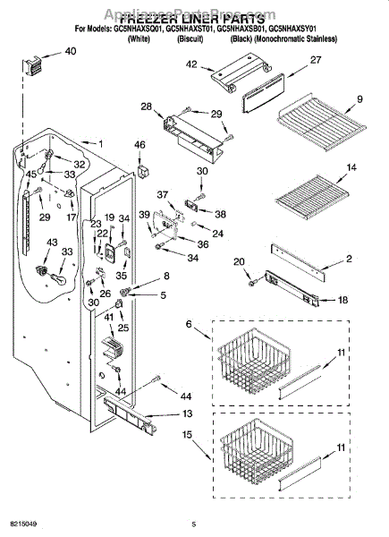 Parts for Whirlpool GC5NHAXSB01: 04 - Freezer Liner Parts