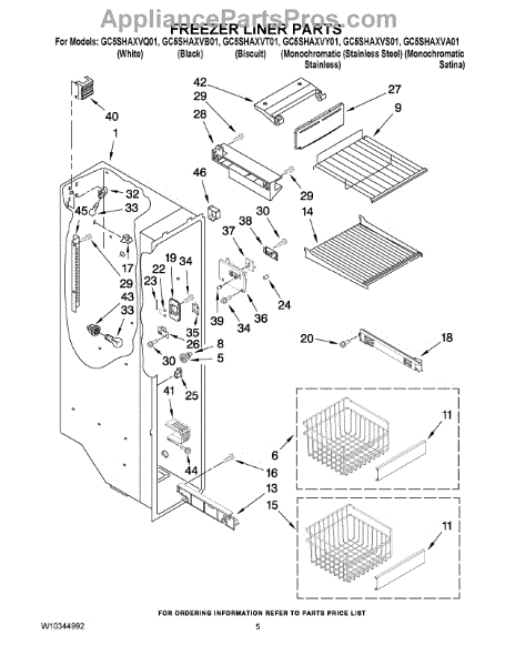 Parts for Whirlpool GC5SHAXVY01: 04 - Freezer Liner Parts