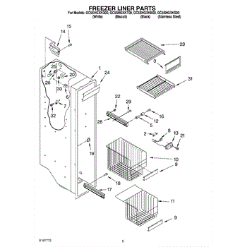 Parts for Whirlpool GC5SHGXKT00: 04 - Freezer Liner Parts