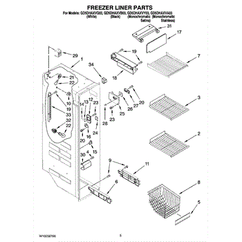 Parts for Whirlpool GD5DHAXVA03: 04 - Freezer Liner Parts