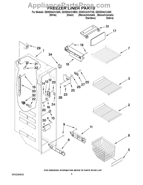 Parts for Whirlpool GD5DHAXVY05: 04 - Freezer Liner Parts