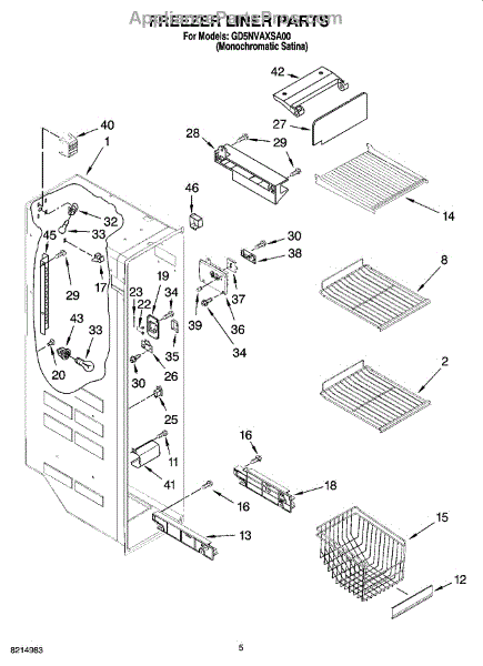 Parts for Whirlpool GD5NVAXSA00: 04 - Freezer Liner Parts