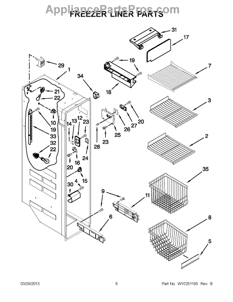 Parts for Whirlpool GD5RVAXVA02: 04 - Freezer Liner Parts