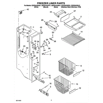 Parts for Whirlpool GD5SHAXNL01: 04 - Freezer Liner Parts