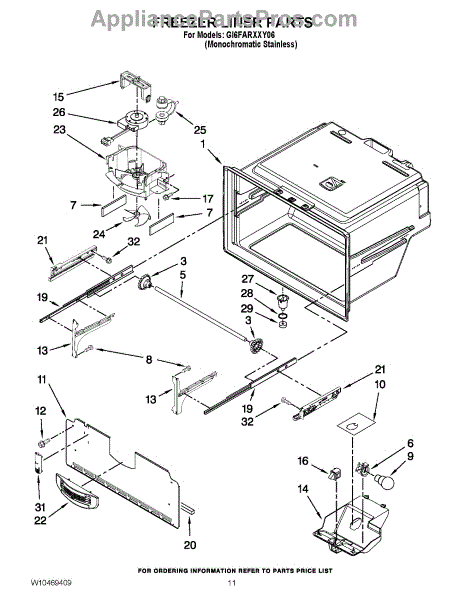 Parts for Whirlpool GI6FARXXY06: 06 - Freezer Liner Parts