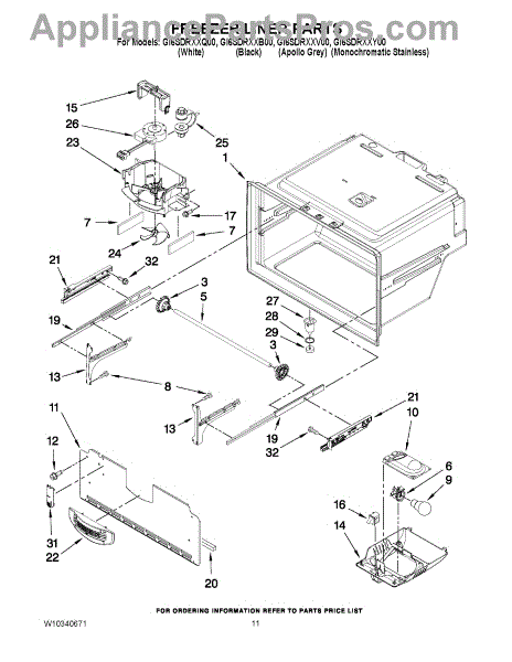 Parts for Whirlpool GI6SDRXXQ00: 06 - Freezer Liner Parts