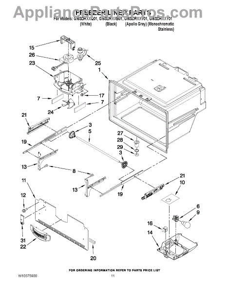Parts for Whirlpool GI6SDRXXV01: 06 - Freezer Liner Parts