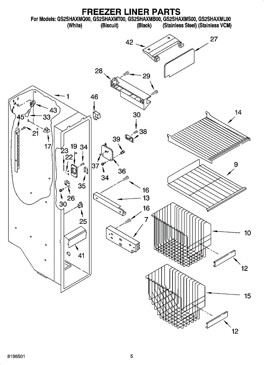 Parts for Whirlpool GS2SHAXMS00: 04 - Freezer Liner Parts