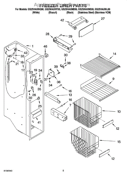 Parts for Whirlpool GS2SHAXNL00: 04 - Freezer Liner Parts