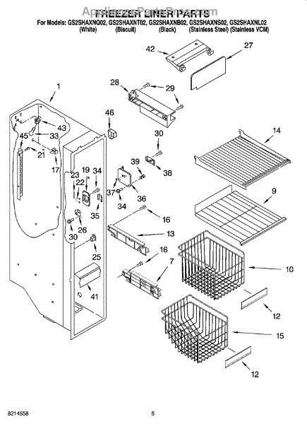 Parts for Whirlpool GS2SHAXNQ02: 04 - Freezer Liner Parts