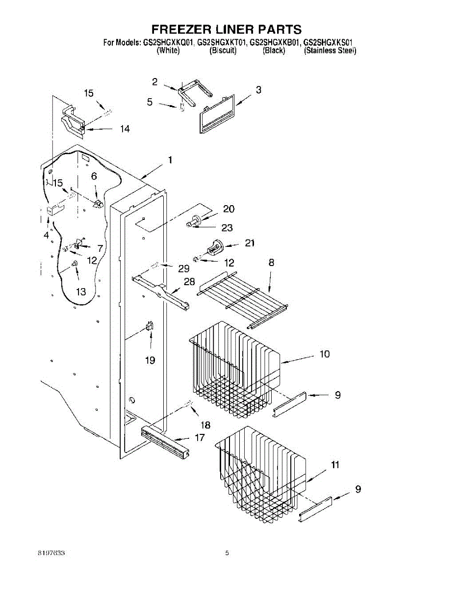 Parts for Whirlpool GS2SHGXKQ01: 04 - Freezer Liner Parts