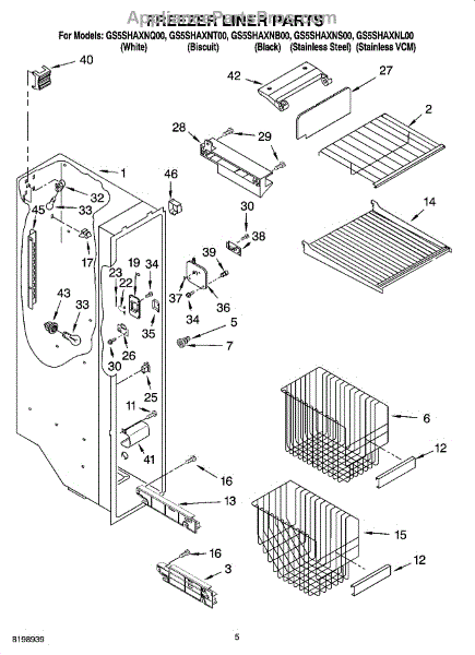 Parts for Whirlpool GS5SHAXNL00: 04 - Freezer Liner Parts