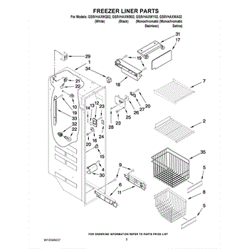 Parts for Whirlpool GS5VHAXWA02: 04 - Freezer Liner Parts
