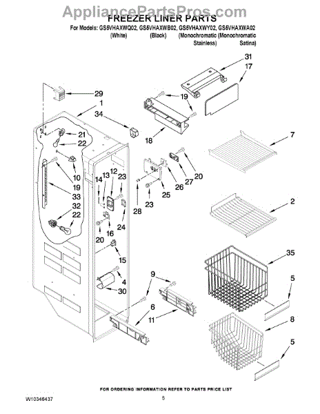 Parts for Whirlpool GS5VHAXWB02: 04 - Freezer Liner Parts