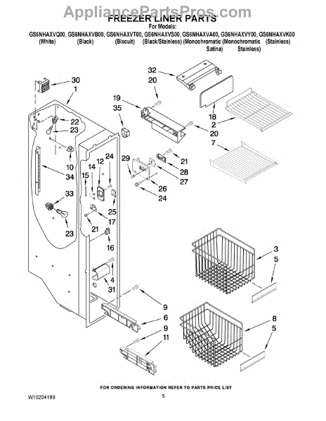 Parts for Whirlpool GS6NHAXVT00: 04 - Freezer Liner Parts